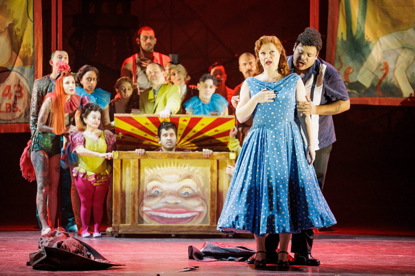 As part of the production, Così recreates the fantasised ideal of the American fairground, where rules aren’t always as strict as they would be in mundane everyday life – strongmen walk high rope walkers near trapeze artists, and nothing is as it should be.